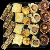 pour 5 à 7 personnes soit 30 tranches brioche pur beurre garnie de miette de surimi mayonnaise maison, saumon crème citron ,rillettes de thon